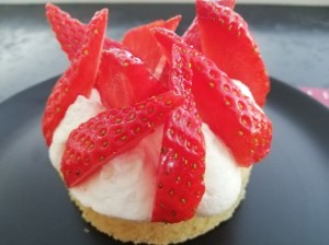 Tartelette fraises chantilly sur son palet breton (r)
