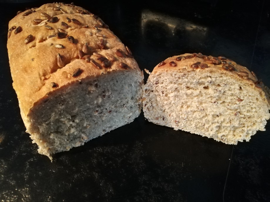 Pour un bon petit déjeuner ou pour accompagner un bon repas, laissez-vous tenter par un pain semi-complet aux graines de lin et de tournesol.. 😋