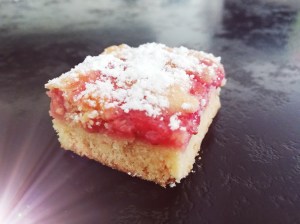 Carré streusel à la rhubarbe (r)